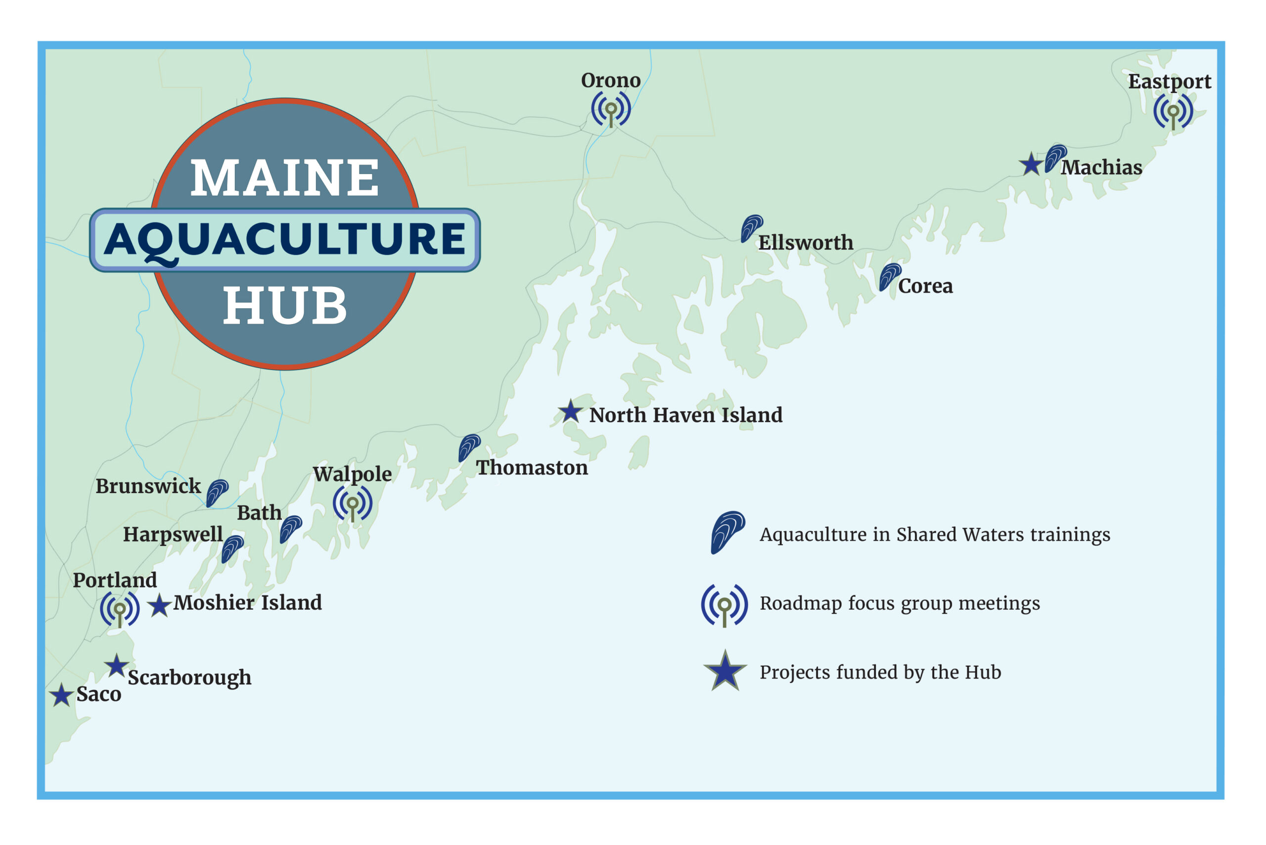 The Maine Aquaculture Hub was formed to help the aquaculture industry in Maine overcome barriers to growth. Hub partners will, together: